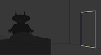 Ted lay quietly in his bed, his eyes wide open, straining to hear the faint scratchy sound of the monster's approach. For a while, nothing happened. The monster always came just as he was about to fall asleep. As the night wore on, his eyelids felt heavier and though he pinched his slender belly several times he could feel himself falling into darkness. He slid the carving fork beneath the duvet, ready to surprise the monster when it came. The warmth of the room and the steady drone of traffic on the distant main road dulled his mind and he blinked slowly. A faint hiss crept into his consciousness. His hand tightened on the fork handle and he slid it upwards as he slowly opened his eyes.
